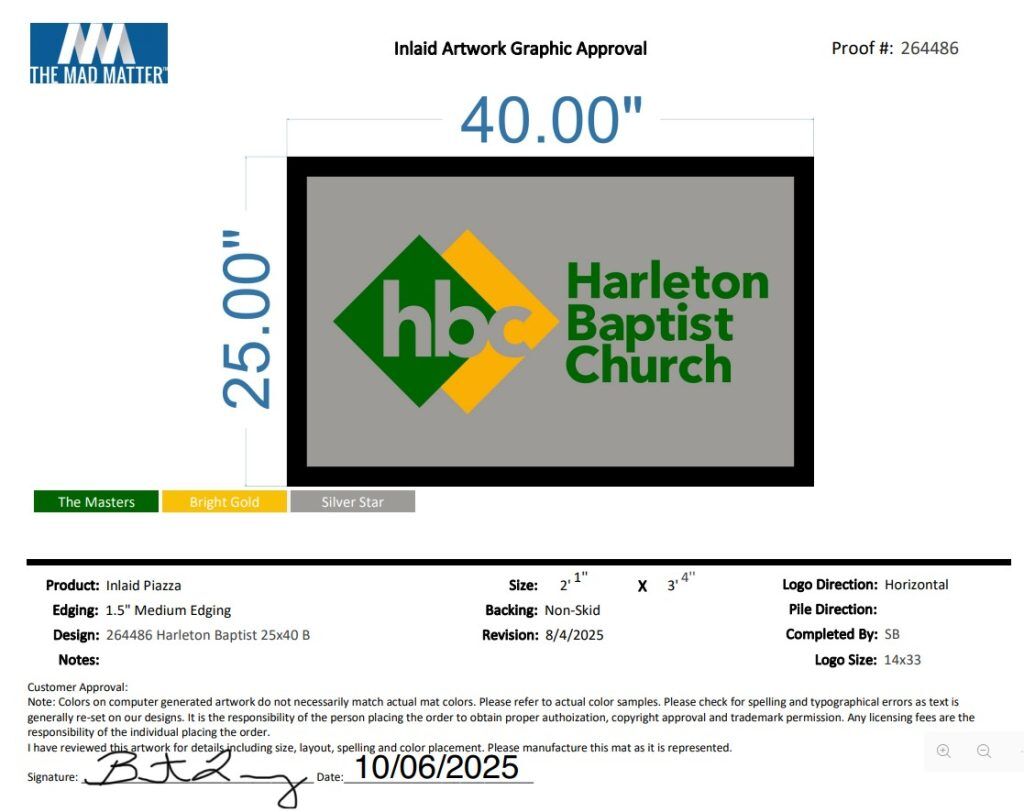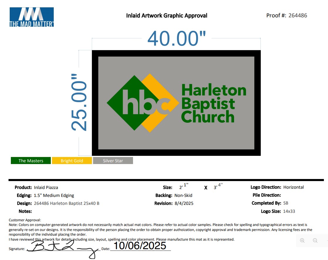 Piazza Logo Mat Size – 40″ x 25″ Proof # 264597 Horizontal Edged