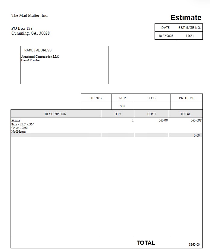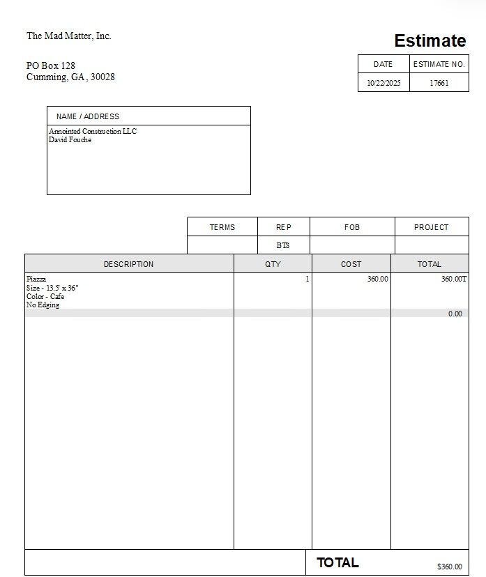 Piazza Size – 13.5′ x 36″ Color – Cafe No Edging for recessed area